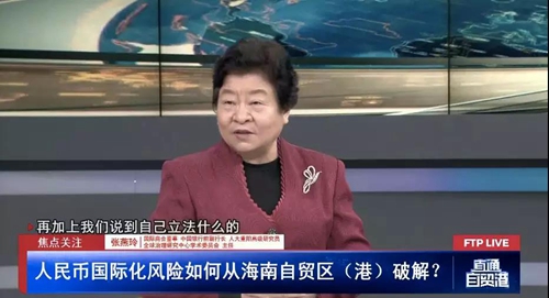 中国银行前副行长、国际商会执行董事、人大重阳高级研究员、全球治理研究中心学术委员会主任 张燕玲:比方他借款他就会考虑到我是从哪个市场借更好,全球我都可以去开放的,所以这是对海南的,整个的企业老百姓都有好处。