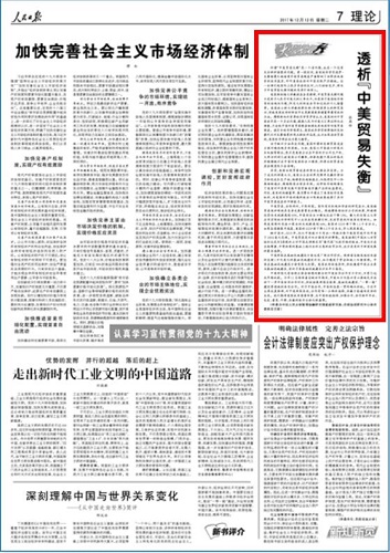 中美两国元首海湖庄园会晤期间提出的中美经济合作百日计划,目前已达成早期收获。今年11月特朗普总统访华期间,中美双方均表示有必要制定并启动下一步中美经济合作计划,积极拓展两国在能源、基础设施建设、“一带一路”建设等领域的务实合作。对于中美合作,中国的态度一贯明确而积极。习近平主席反复强调,对中美两国来说,合作是唯一正确的选择,共赢才能通向更好的未来。我们期待美国政府看清形势,与中国坦诚相待、加强合作,共同掀开开放、包容、普惠、平衡、共赢的经济全球化新篇章。(欢迎关注人大重阳新浪微博:@人大重阳,微信公众号:rdcy2013)