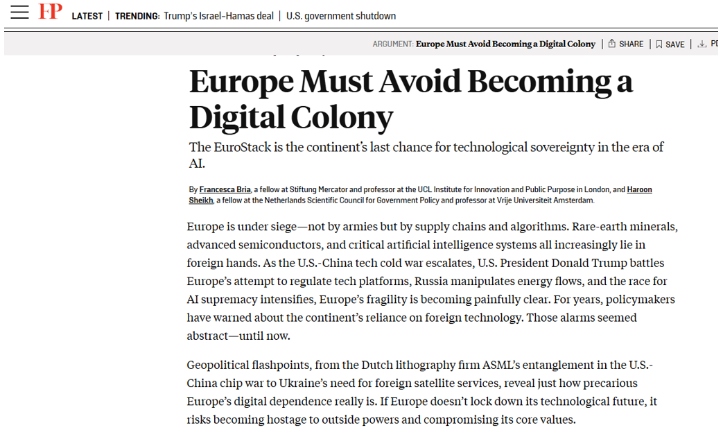 欧洲正遭受围攻——不是来自军队,而是来自供应链和算法。稀土矿物、先进半导体以及关键的人工智能系统越来越多地落入外国手中。