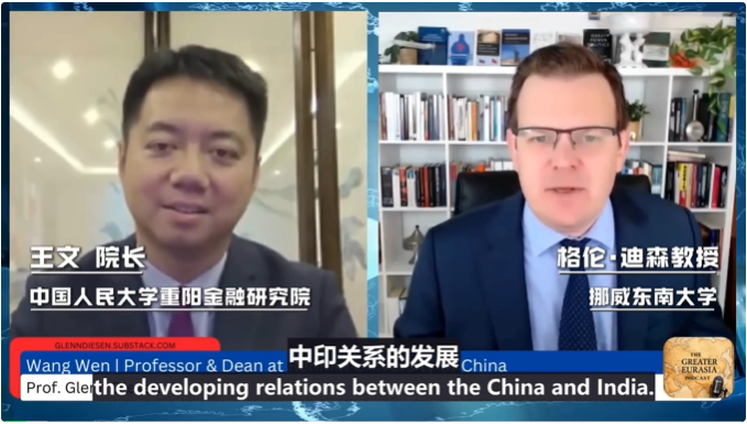 2025年9月底,中国人民大学重阳金融研究院院长、全球领导力学院院长王文应邀接受挪威东南大学国际关系学教授、著名政治学者格伦·迪森(Glenn Diesen)YouTube专访。