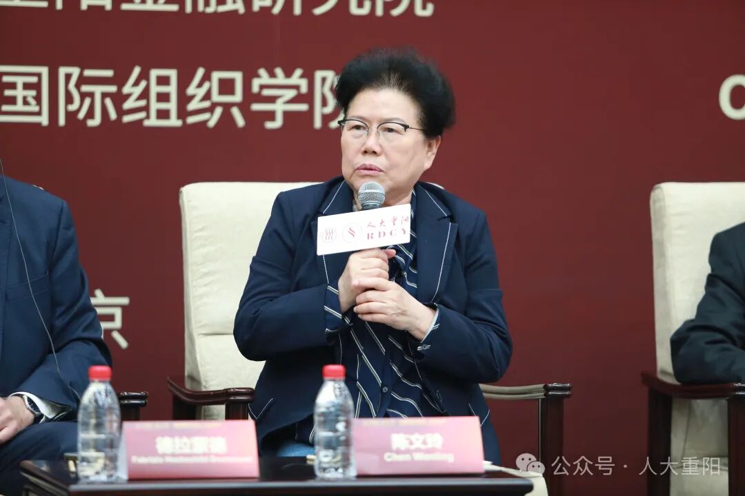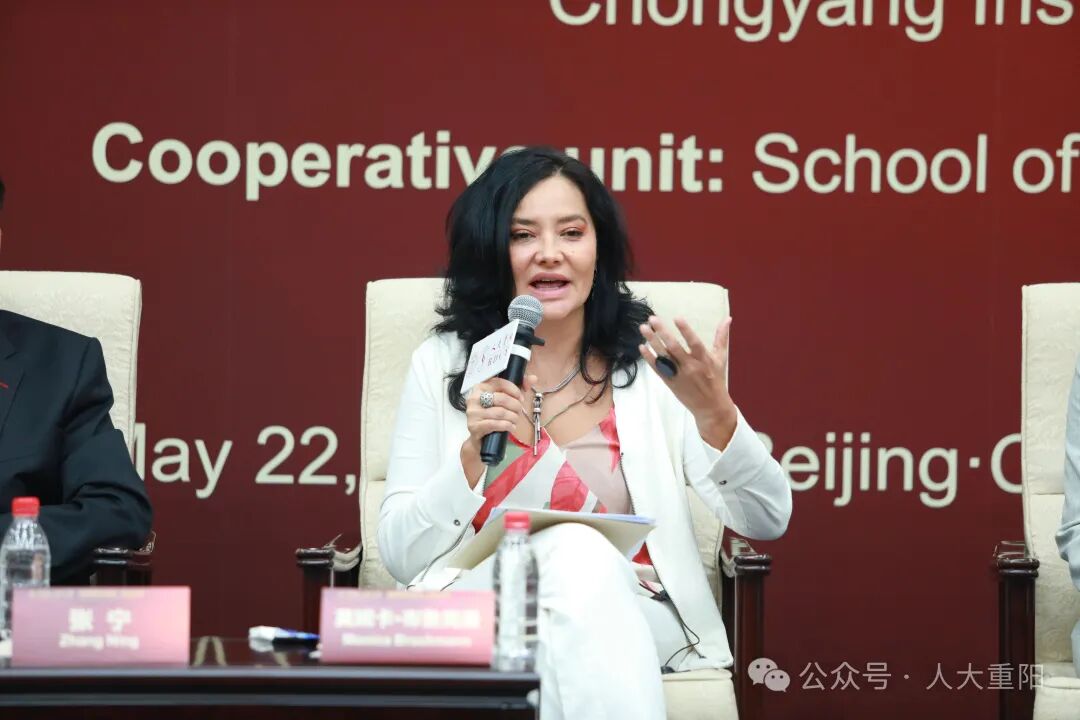 在圆桌对话环节,联合国前副秘书长,日内瓦安全政策中心研究员、美国哥伦比亚大学国际与公共事务学院肯特冲突调解项目高级研究员德拉蒙德,中国国际经济交流中心原总经济师陈文玲,中国教育发展战略学会副会长、国际胜任力培养专委会理事长,国家留学基金委原副秘书长张宁,巴西里约热内卢联邦大学教授莫妮卡·布鲁克曼,中国人民大学教授、纪检监察学院党委书记张晓萌,中国人民大学国际文化交流学院院长、区域国别研究院副院长王建华围绕“全球领导力培养:世界经验与中国实践”主题展开研讨。