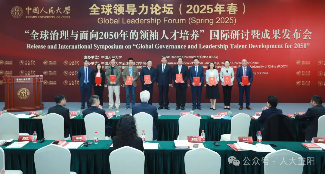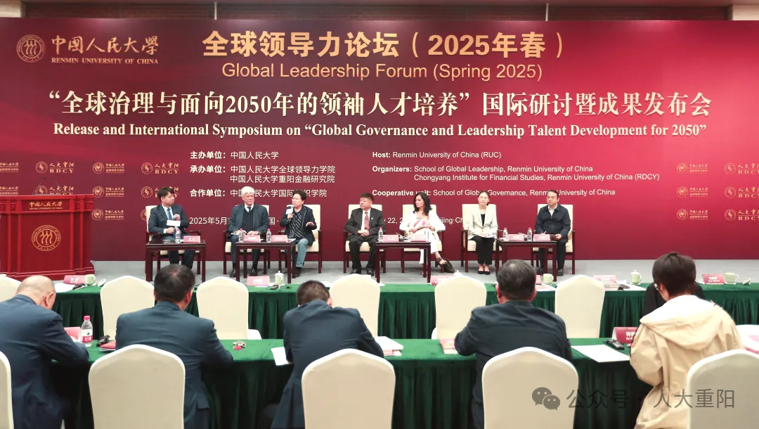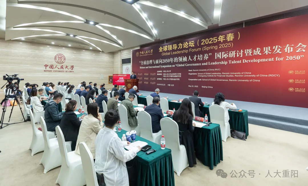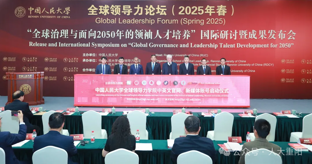 2024年11月4日,中国人民大学成立中国高校第一所全球领导力学院。在此背景下,5月22日,由中国人民大学主办、中国人民大学全球领导力学院和中国人民大学重阳金融研究院(人大重阳)承办、中国人民大学国际组织学院合作举办的首届全球领导力论坛“全球治理与面向2050年的领袖人才培养”国际研讨暨成果发布会在京召开。