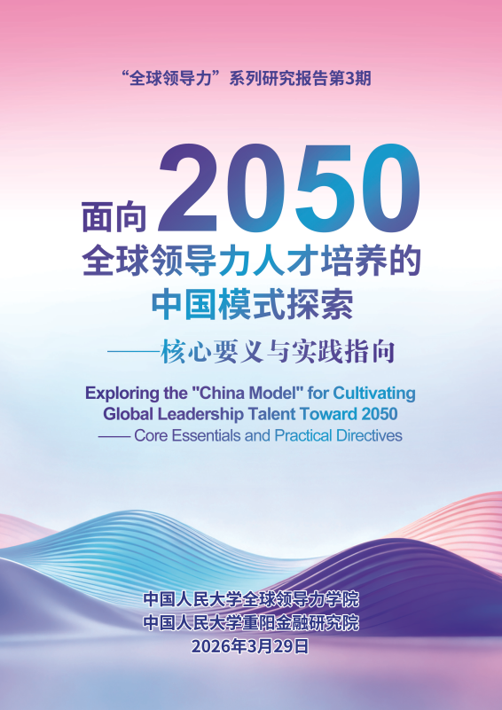 郑新业主持。成果发布环节,中国人民大学全球领导力学院院长、重阳金融研究院院长王文发布《面向2050全球领导力人才培养的中国模式探索——核心要义与实践指向》《AI时代的全球领导力重塑——范式演化、政治哲学转向与中国路径》智库报告及《全球领导力学院2026年招生计划》。