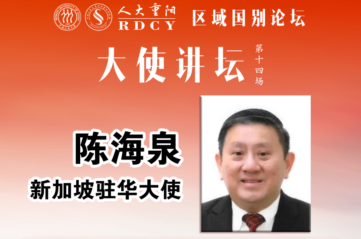 中国人民大学重阳金融研究院区域国别论坛之“大使讲坛”第十四场特邀新加坡驻华大使陈海泉先生于2026年3月3日做客中国人民大学并发表主旨演讲,围绕“中新双边关系”分享观察与思考,并与现场嘉宾交流互动。