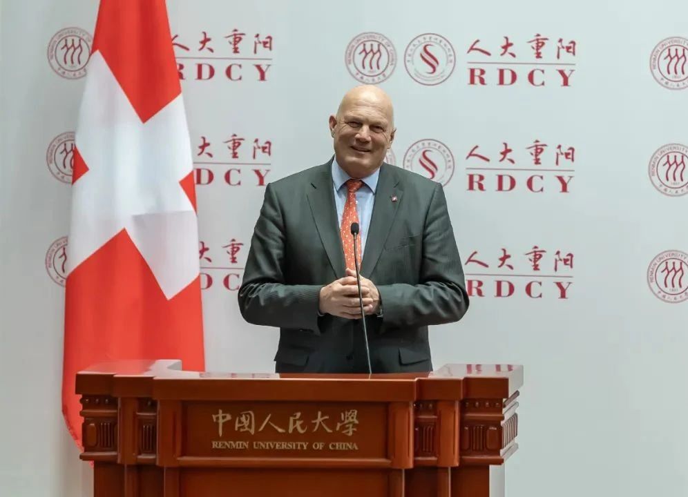 2月25日,瑞士驻华大使白瑞谊(Jürg Burri)访问中国人民大学,并在重阳金融研究院(人大重阳) 区域国别论坛之“大使讲坛”第六讲 发表演讲。