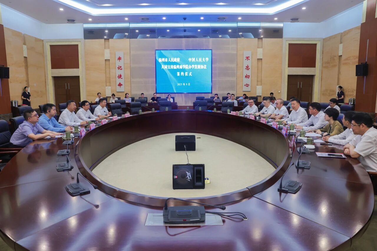 9月28日上午,温州市人民政府与中国人民大学签订《共同支持温州商学院办学发展协议》,共同支持温州商学院办学发展。副省长、市委书记张振丰和中国人民大学党委书记张东刚一同见证签约并座谈交流。