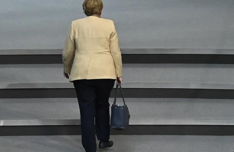2021年9月7日,德国总理默克尔在德国国会下院柏林议院会议期间离开了全体会议厅。来源:金融时报