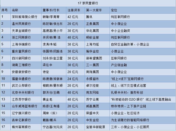 这17家基本上是由一两家大企业为主发起,跟当初民生银行发起设立的模式不一样。民生银行是由全国工商联牵头,若干家企业加入,从一开始就是股权多元化,而且一直没有绝对控股的大股东。这种股权结构可以保证市场化的运营、民主化的决策,股权规模也可以迅速地扩大。