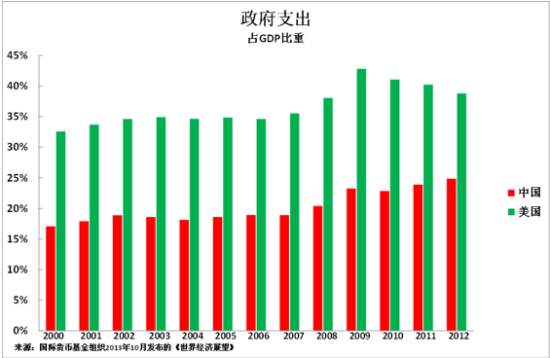 图1:2012年中、德、美、日四国政府支出占GDP比重