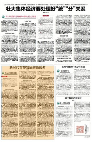 肩负首都发展的新使命,谋划建设中国特色大国首都,应当在实现“两个一百年”奋斗目标、中华民族伟大复兴中国梦的历史坐标系中认识和把握首都发展的新方位,应当统筹国际国内两个大局,既服从和服务于党和国家事业的需要,又满足人民群众对美好生活的新期盼。