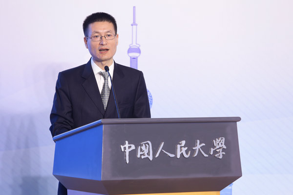 中国人民大学党委书记靳诺作开幕式致辞,中国人民大学副校长吴晓球、中国社会科学院原副院长李扬作主题演讲。