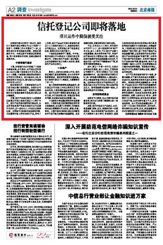 中信登因此被寄予了厚望。今年初,银监会提出年内将设立中国信托登记有限公司,并建立信托产品统一登记制度,以此来保障信托各方当事人的权益,提高信托产品的公信力。