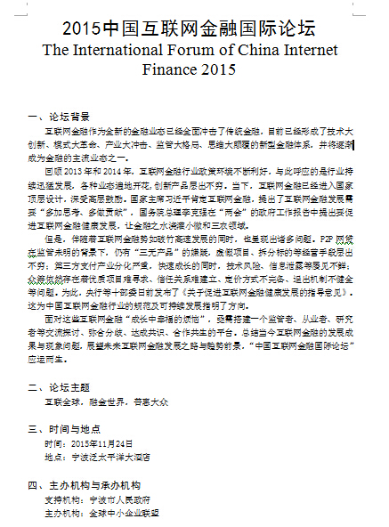 面对这些互联网金融"成长中幸福的烦恼",亟需搭建一个监管者、从业者、研究者等交流探讨、弥合分歧、达成共识、合作共生的平台。总结当今互联网金融的发展成果与现象问题,展望未来互联网金融发展之路与趋势前景,"中国互联网金融国际论坛"应运而生。