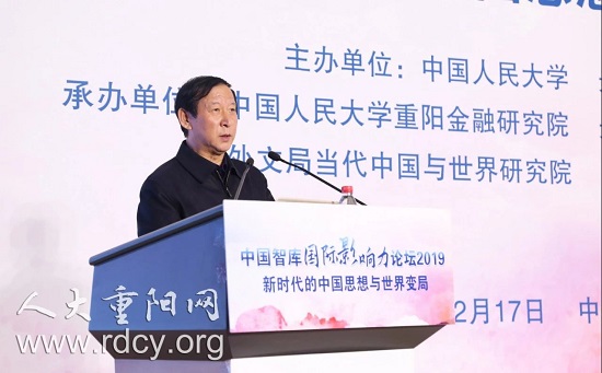 12月17日,由中国人民大学、光明日报主办,中国人民大学重阳金融研究院、光明日报智库研究与发布中心、外文局当代中国与世界研究院、中国网、《智库理论与实践》杂志社联合承办的“新时代的中国思想与世界变局——中国智库国际影响力论坛2019”在中国人民大学举行。作为行业内以“智库国际影响力”为主题的最大盛会,邀请了多位中央部委领导及智库、媒体界近百位专家和学者参与讨论,共有500多位各界人士出席,为中国智库更好地提升国际影响力打下基础。