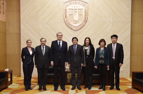 3月26日下午,人大重阳外籍高级研究员、斯洛文尼亚前总统、联合国全球水资源与和平高级别小组主席达尼洛·图尔克(Danilo Türk)访问北京外国语大学(简称北外)并作专题讲座。校长彭龙会见了达尼洛·图尔克一行。