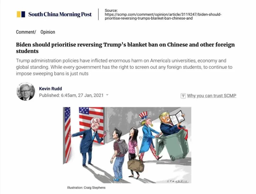 拜登总统新官上任,当下面临众多挑战。其中有三个核心:增强美国的全球经济和技术竞争力,在充满分裂的美国再造民主,以及修复美国的国际领导力。澳大利亚第26任总理、亚洲协会主席兼CEO、亚洲协会政策研究院主席陆克文对拜登提出一个“一石三鸟”的政策建议:废除特没谱的特朗普对国际留学生的签证限制,优先加速赴美学子签证的正常化。