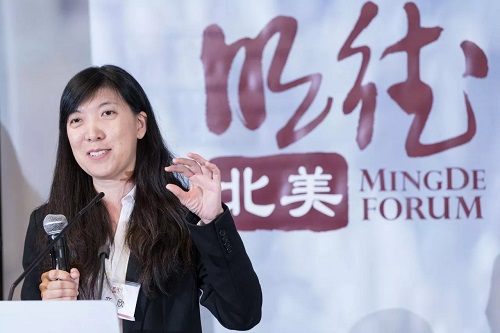 纽约总领馆副总领事张美芳在致辞中说,大学之道,在明明德,人民大学的经济、金融、新闻等学科闻名世界,她代表纽约总领馆对这个非常重要的历史时刻召开的明德论坛表示热烈祝贺,并期望明德论坛不断拓宽探讨领域,充分发挥民间外交的巨大作用。张副总领事向论坛介绍了十九大的重大成果和美国总统特朗普访华对中美关系和世界的重要意义,勉励人大校友了解新时代中国新的发展变化,多回国看看走走,为祖国现代化建设出力,交流合作,合作共赢,积极参与中美交流。