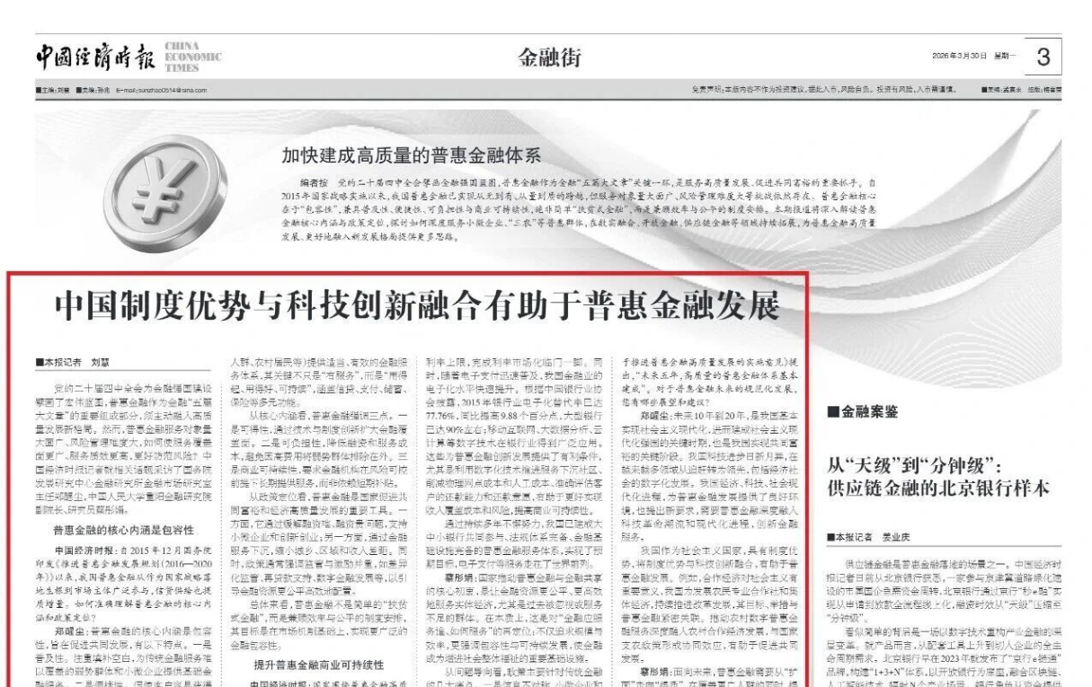 蔡彤娟:普惠金融的高质量发展如何让普通人受益?