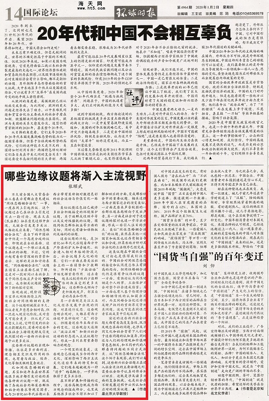 作者张颐武系北京大学教授、中国人民大学重阳金融研究院高级研究员,本文刊于1月2日《环球时报》。
