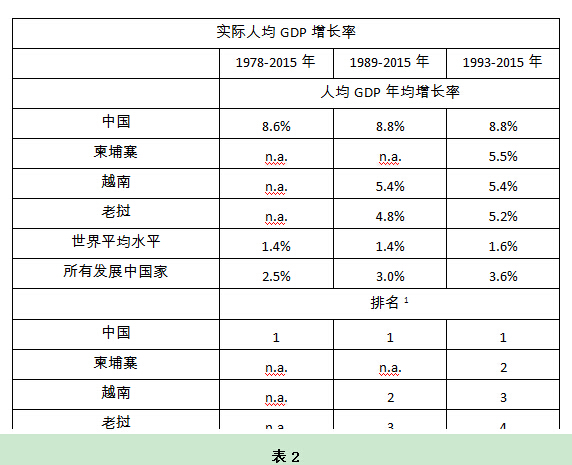 对中国发展模式与1989年正式问世的“华盛顿共识”的全面比较,请见拙文《世行数据中隐藏着一个秘密》。文章显示,除人口低于五百万的小国或者石油生产占主导地位的国家外,继中国后取得世界最快增速的国家是柬埔寨、越南和老挝(详细数据见表2)。