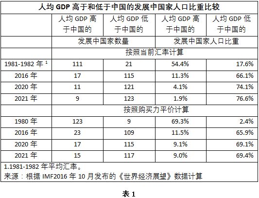 ·2016年则相反,人均GDP高于中国的发展中国家人口比重仅为11%,人均GDP低于中国的发展中国家人口比重则为66%。