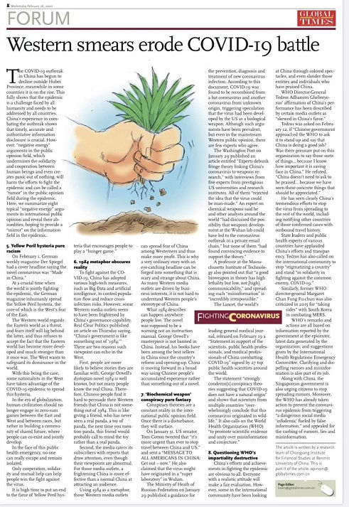 显然上述诽谤毫无根据,只是基于凭空想象玩弄的文字游戏,纯属借疫情之机炒作“中国威胁论”,是国际舆论场的一种病毒。